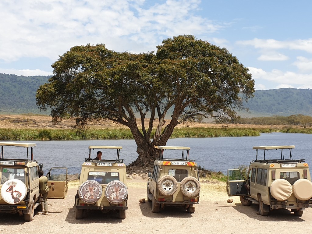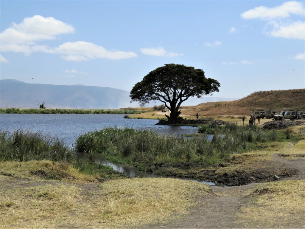 Der Crater hat einen Durchmesser von etwa 20 km und liegt 1800 m im Zentrum und ca. 2400 m am Kraterrand, wo sich auch unser Camp befindet. Erwähnenswert ist der Memorial Stein der Verstorbenen, die sich für den Aufbau des NCA verdient gemacht haben, u.a. Michael Grzimek: