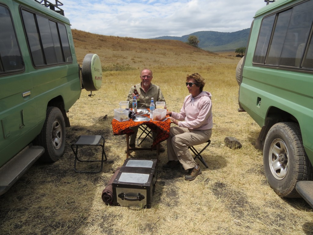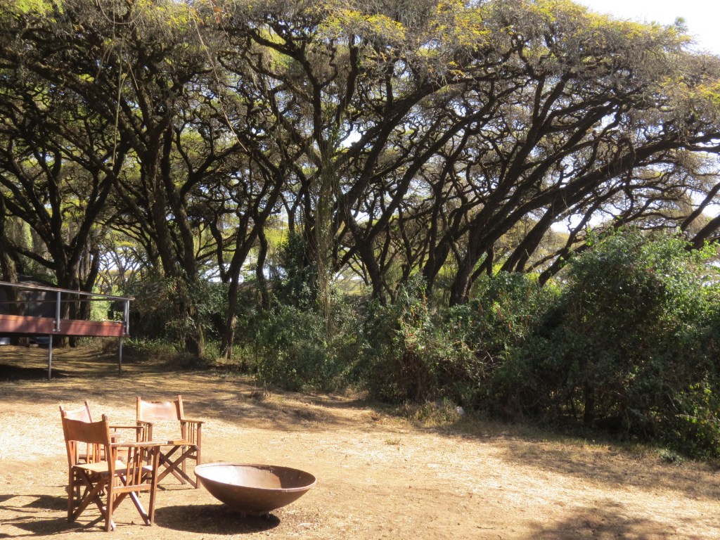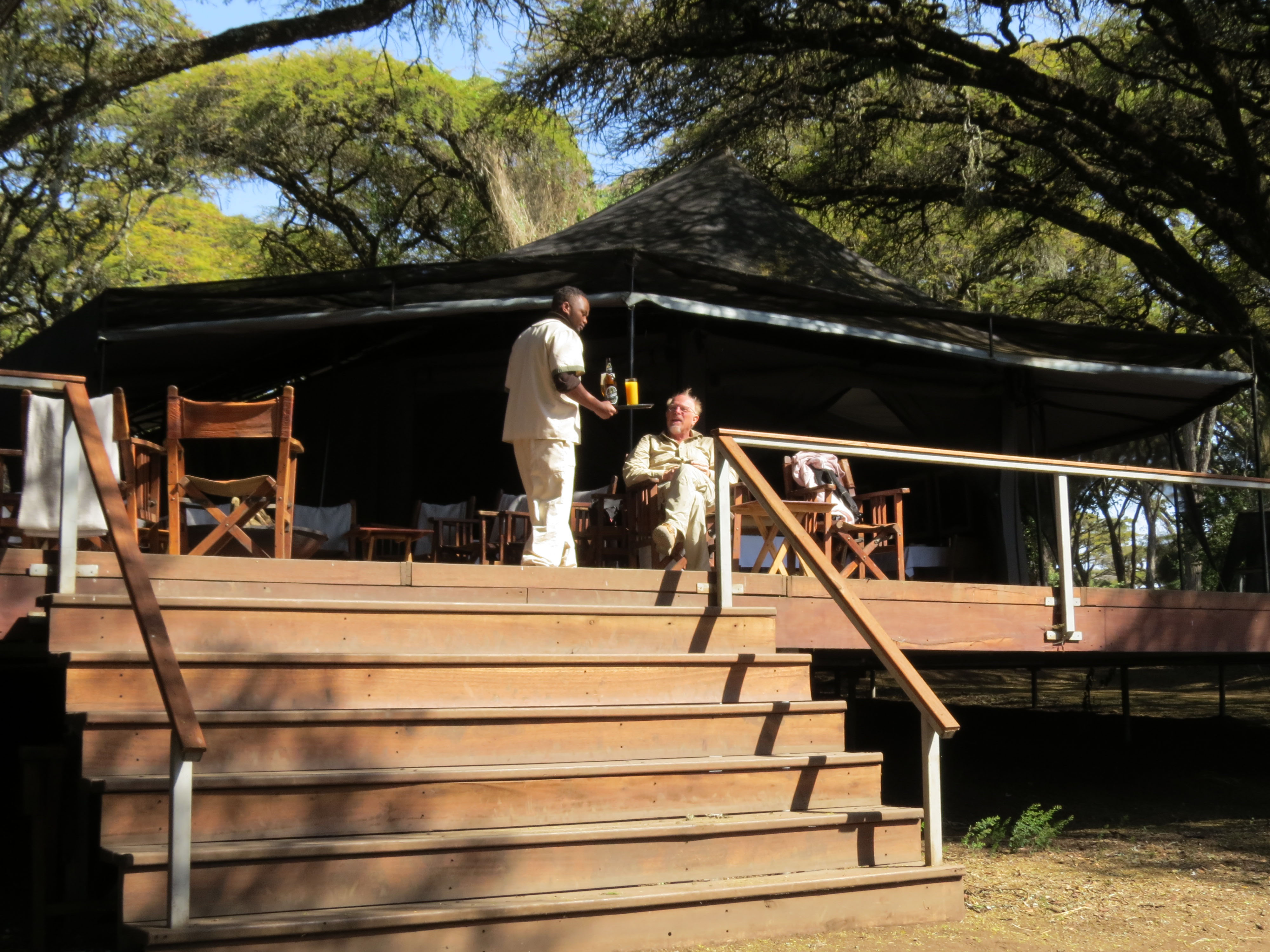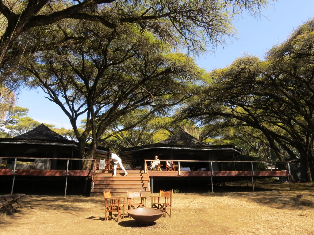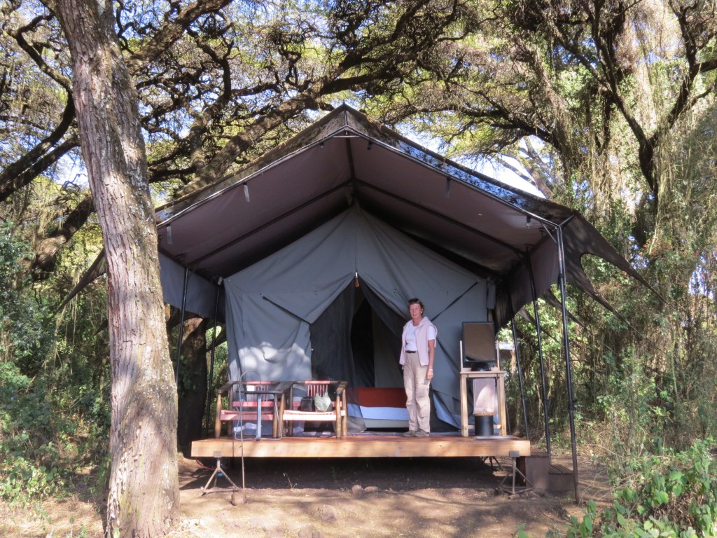 Den Maasai ist es erlaubt, ihre Viehherden am Kraterrand zu weiden. Dadurch kommt es zu der Eigenart, dass Wildtiere und Haustiere ein gemeinsames Gebiet beweiden, was z.B. in Südafrika aufgrund von Seuchenbestimmungen undenkbar wäre. Die Kühe der Maasai tragen häufig Glocken, was für uns eine bizarren Eindruck hinterlässt: in der Wildnis Kuhglocken zu hören. Unser tented Camp von Sanctuary liegt am oberen Kraterrand und besteht aus 10 Zelten und dem Hauptzelt: